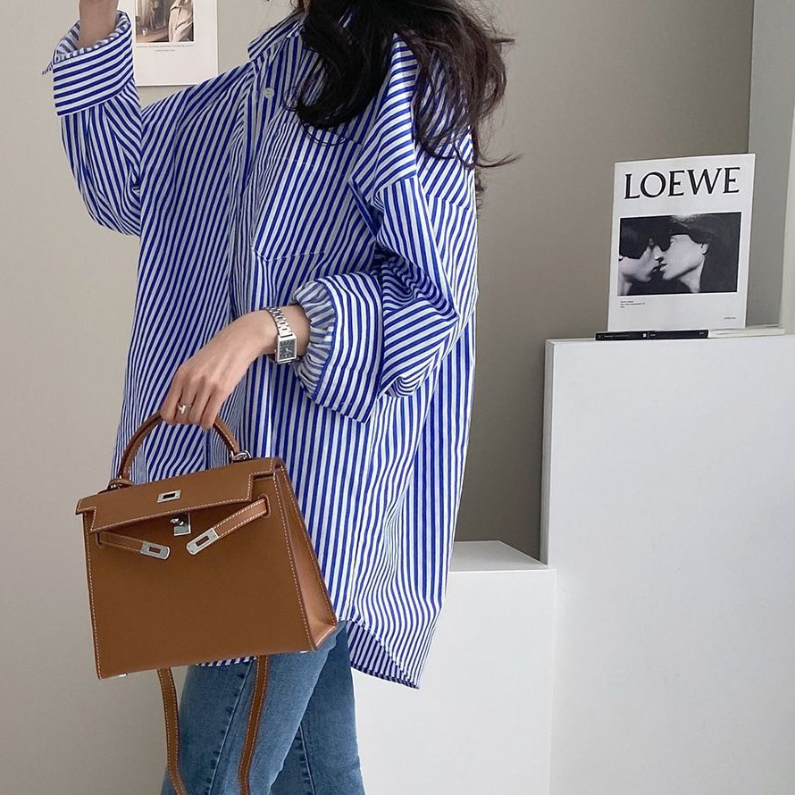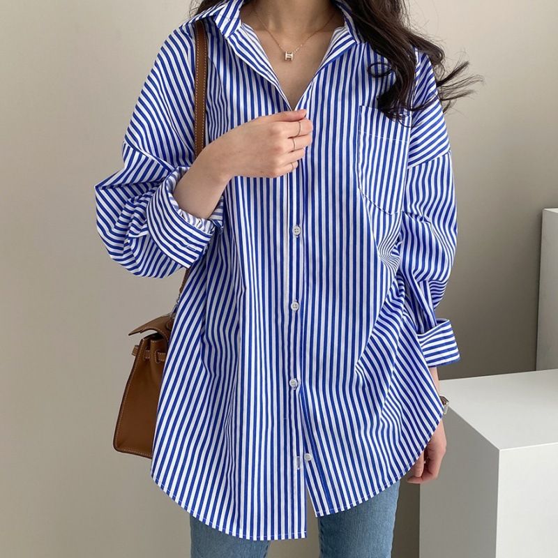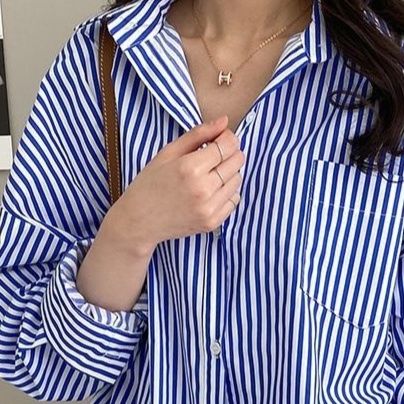 爽やかな縦縞柄が目を引く開襟デザインのシャツです。