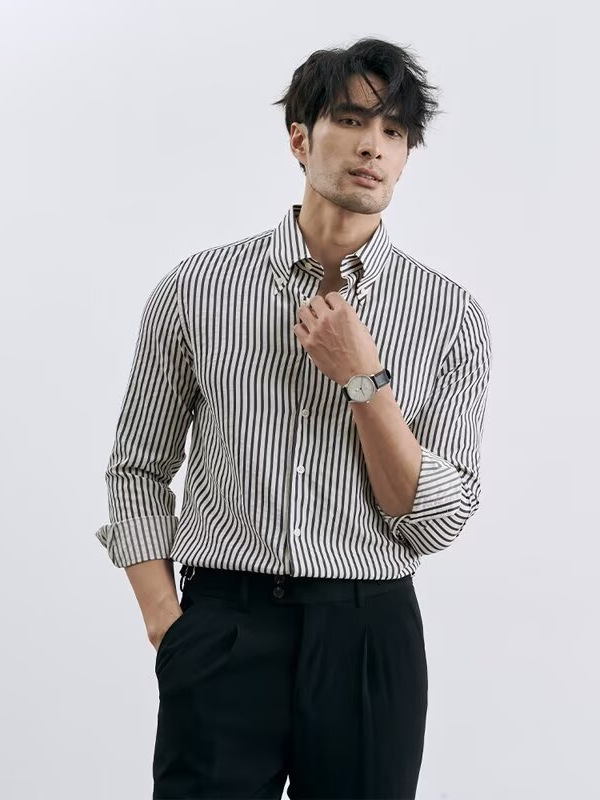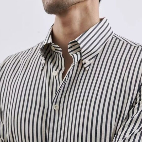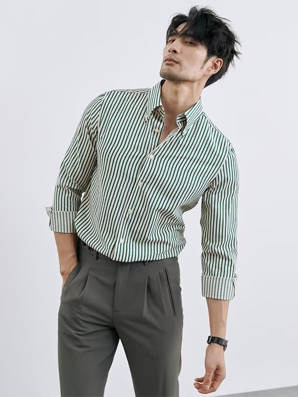 40代メンズファッションにふさわしい上品な雰囲気が魅力のシャツで、スラックスと合わせれば洗練されたスタイルが完成します。