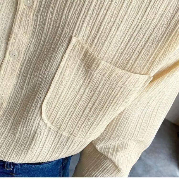 細かな縦縞模様が縦のラインを強調し、すっきりとした印象を与えます。
