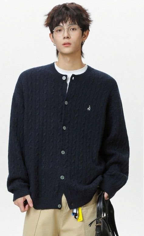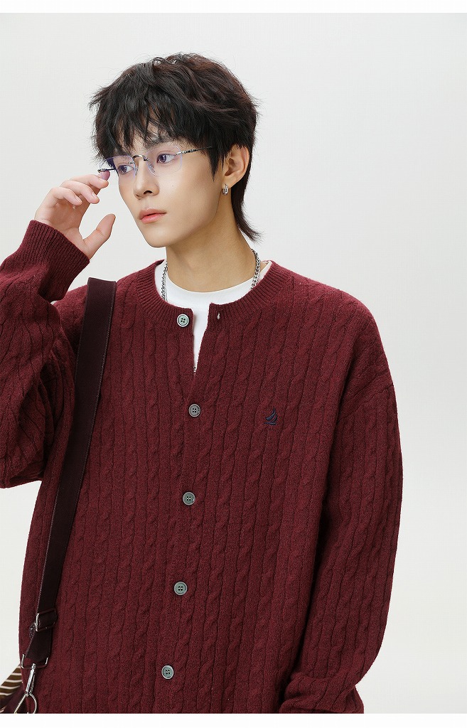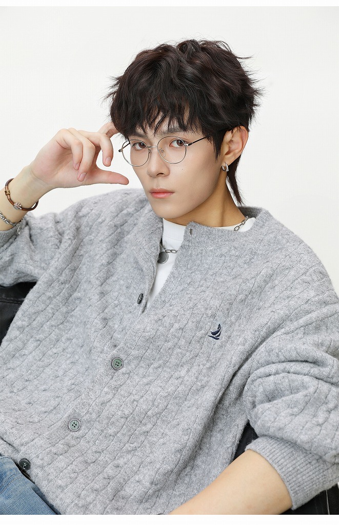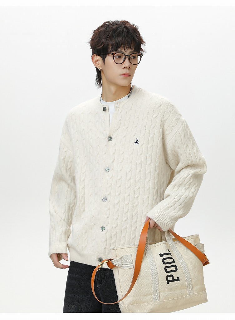 40代メンズファッションにぴったりの上品なケーブル編みカーディガンです。