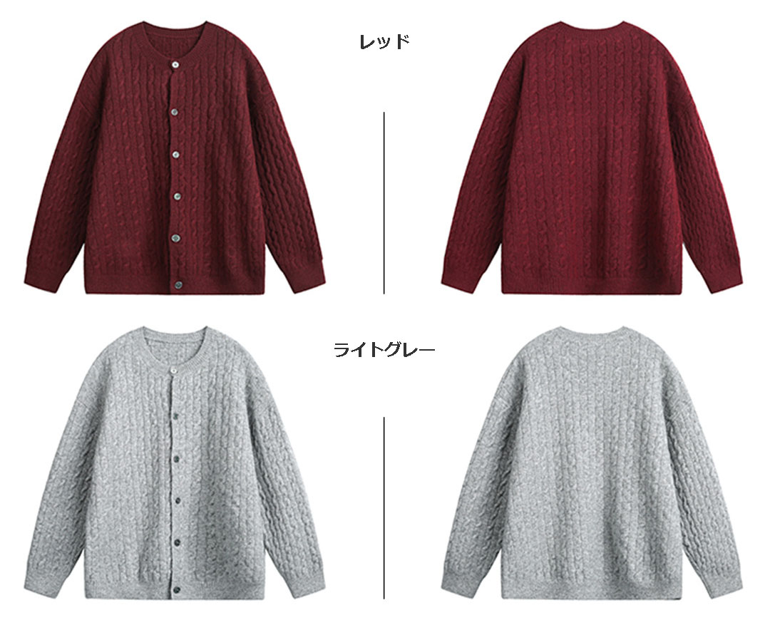 サイズ表記単位:CM 採寸に個人差があり1-3cm誤差がある場合がございます。 ▲【カラー】レッド、アイボリー、ライトグレー、ネイビー ▲【素材】ポリエステル86.8%、アクリル5.5%、ウール5%、スパンデックス2.7% ▲【セット内容】ニットジャケット ▲【サイズ】 M 着丈64cm バスト112cm 肩幅54cm 袖丈53cm L 着丈66cm バスト116cm 肩幅56cm 袖丈54cm XL 着丈68cm バスト120cm 肩幅58cm 袖丈55cm 2XL 着丈70cm バスト124cm 肩幅60cm 袖丈56cm