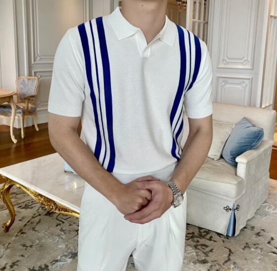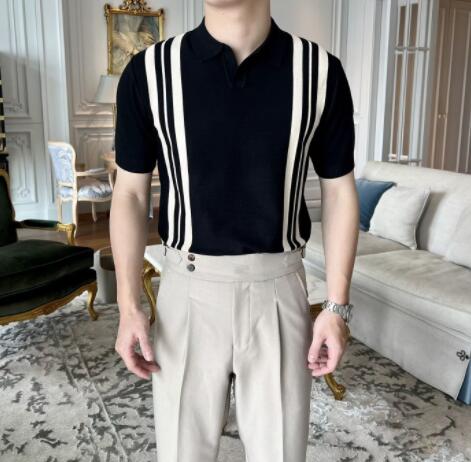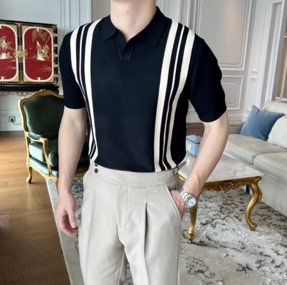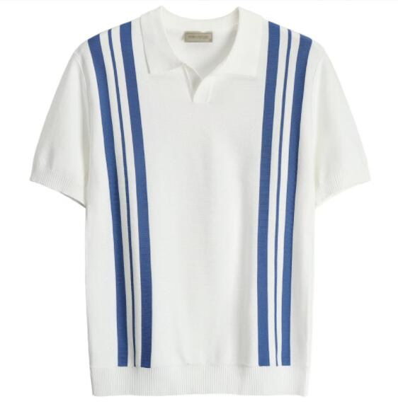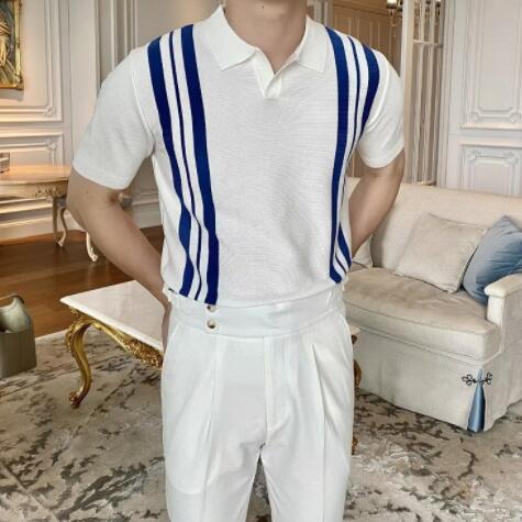 40代メンズファッションにぴったりの上品な縦ストライプポロシャツです。