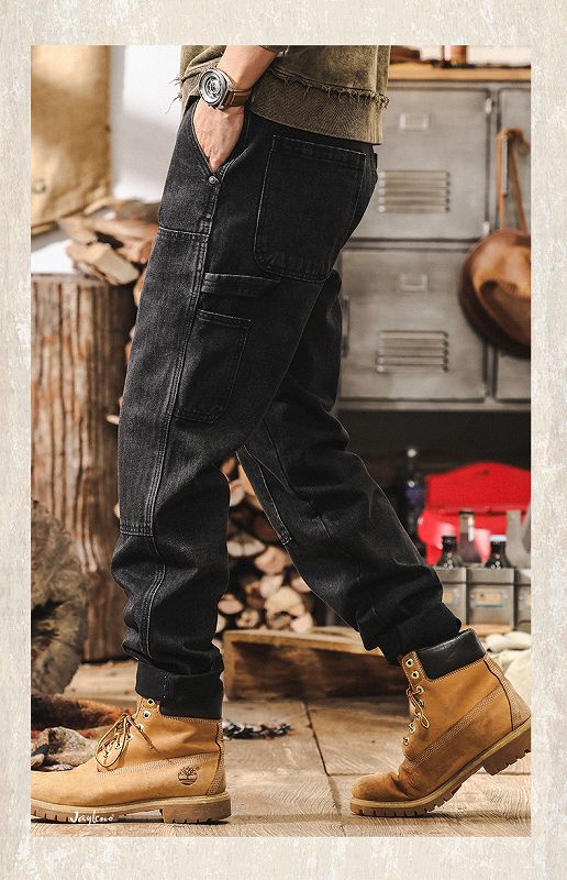 春秋シーズンに活躍する落ち着いたブラックデニムは、カジュアルからアウトドアまで幅広く対応します。